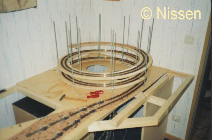 Nachdem die Ausmaße der Anlagengröße (L-Form) festgelegt waren, musste ich als erstes die Gleiswendel bauen.