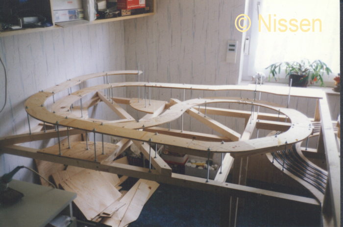 Die Trasse für diese Schleife ist wie man erkennt auf Vierkanthölzer aufgeleimt.