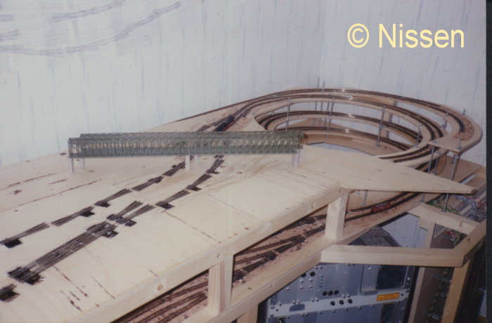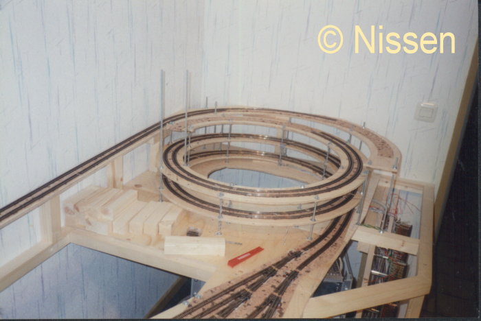 Die erste Schleife ist der Schattenbahnhof, und und die zweite Schleife folgt nun in der mittleren Ebene.